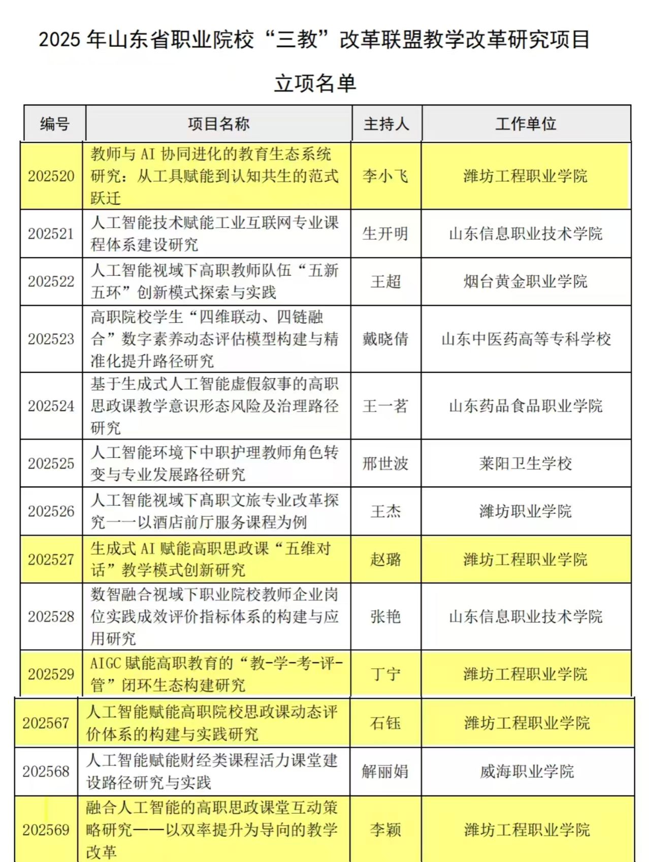 近日,山东省职业院校 “三教” 改革联盟公布 2025 年度教学改革研究项目立项名单。马克思主义学院李小飞、赵璐、丁宁、石钰、李颖五位教师申报项目成功立项。该项目共收到 197 份申报材料,经专家评审仅 80 个项目立项,竞争激烈。