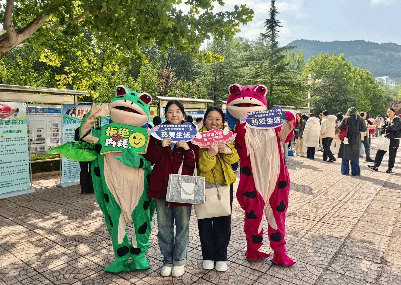 本次活动设置了四项主要内容:一是通过系统设计的精神卫生展板,清晰展示了常见心理问题的识别方法与应对策略,为学生提供了实用易懂的心理健康指引。二是进行心理知识现场竞答,本环节吸引众多学生踊跃参与,大家在轻松的氛围中加深了对心理健康知识的理解。三是开展“拒绝心理暴力”签名活动,承诺墙前,师生们郑重签名,共同表达营造积极健康校园环境的决心。四是举办暖心摄影大赛,以影像为载体,捕捉校园生活中的温暖瞬间,传递积极向上的心理能量。