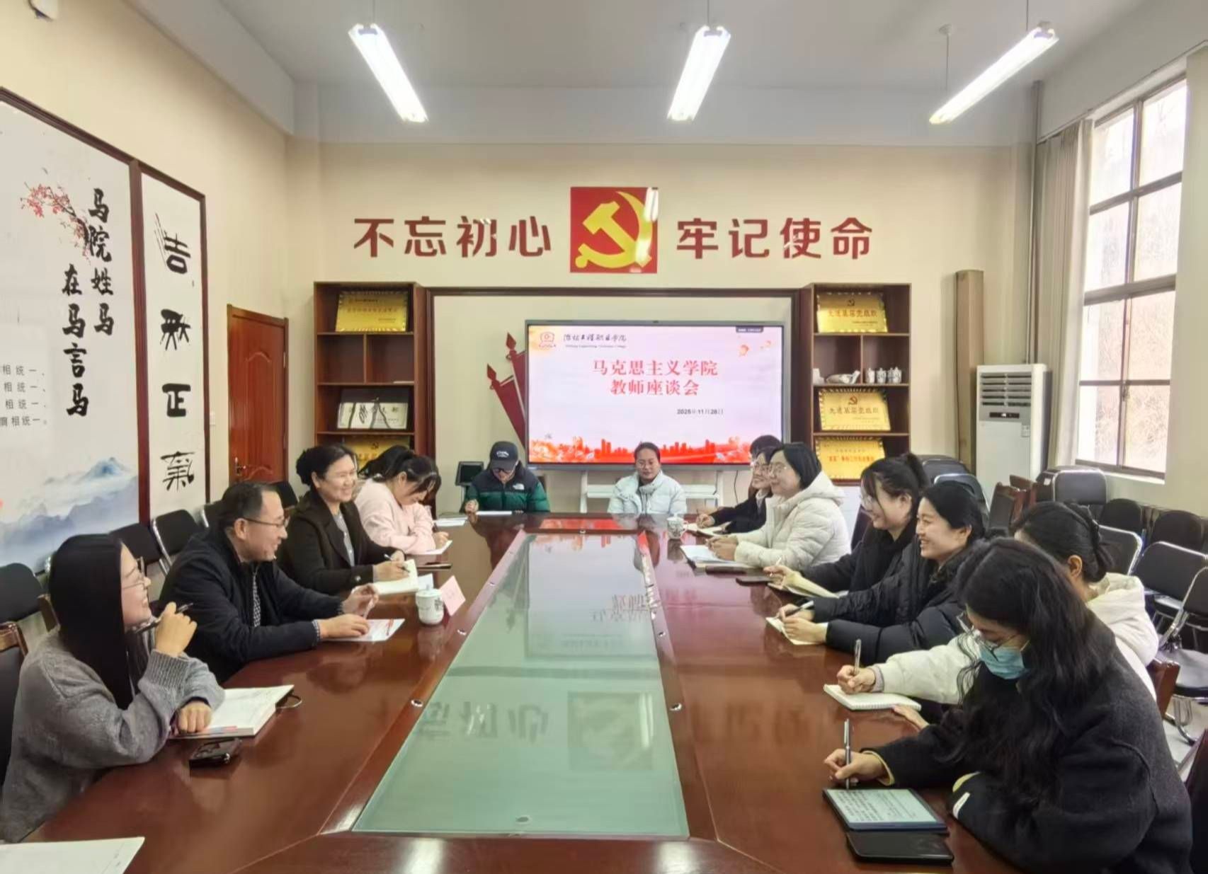 为掌握马克思主义学院教师工作情况,建设高质量思政课。11月28日,学校党委委员卜令冲到马克思主义学院召开教师座谈会。马克思主义学院院长刘攀,党支部书记曾剑以及部分教师参加座谈。