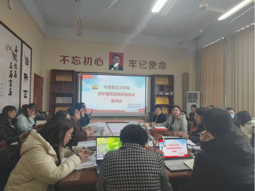 为深入贯彻落实新时代立德树人根本任务,持续推进思政课教学改革创新,2月27日下午,马克思主义学院在1208会议室组织开展2025年春季学期五门思政课集体备课会,聚焦《毛泽东思想和中国特色社会主义理论体系概论》《形势与政策》《“四史”教育》《劳动教育》《国家安全教育》的课程建设与教学实效提升。